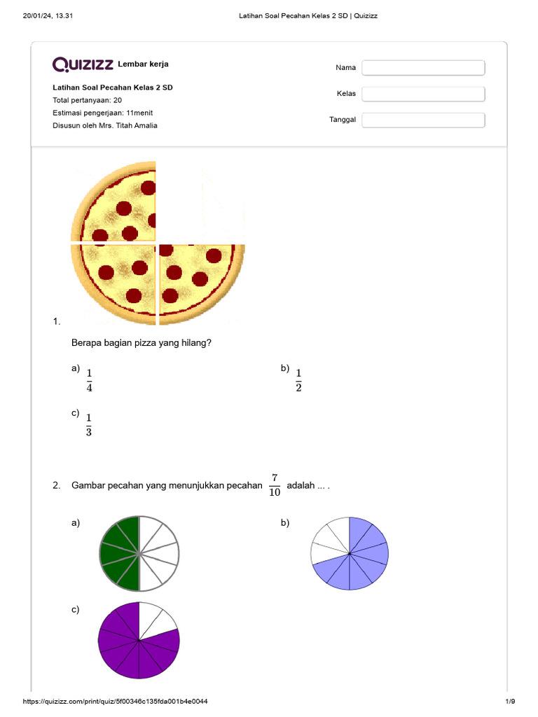Pecahan adalah salah satu konsep matematika fundamental yang akan menemani anak-anak kita sepanjang perjalanan akademis mereka. Memahami pecahan sejak dini akan membuka pintu bagi pemahaman konsep matematika yang lebih kompleks di masa depan. Untuk siswa kelas 2 Sekolah Dasar (SD), pengenalan terhadap pecahan harus dilakukan secara bertahap, menyenangkan, dan melalui contoh-contoh konkret yang mudah dibayangkan. Artikel ini akan membahas secara mendalam mengenai contoh soal pecahan sederhana yang cocok untuk siswa kelas 2 SD, disertai penjelasan mendalam agar pemahaman mereka semakin kokoh.