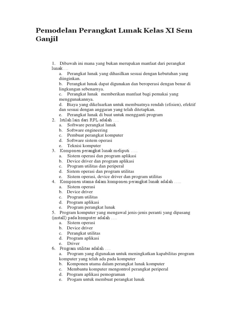 Mengasah Kemampuan Pemodelan Perangkat Lunak: Contoh Soal Kelas 11 Semester 2